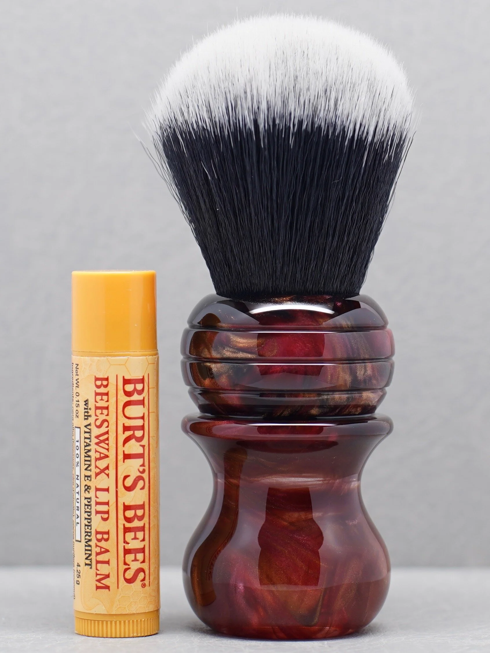 Avg. height: Typically @68-69mm with a 24-25mm knot. The size varies with the knot selected. 5 deep slanted round flutes on the bottom. Premium shape. This shape adds $28 to the price of your brush.
